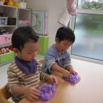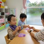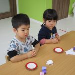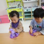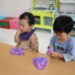 1歳児さんも2歳児さんもぶどうの製作をしました!!