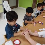 先生にやり方を教えてもらい、のりを使って