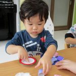 2歳児さんは折り紙で輪を作りました!!