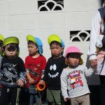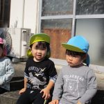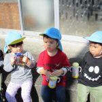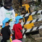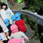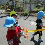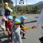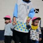 2歳児さんは誘導ロープにつかまって、1歳児さんは