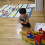 積木を動かして並べたりしながら遊んでいます(^_^)