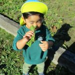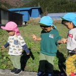 0歳児さんは保育園裏の空き地まで行って、