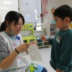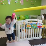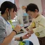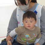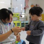 「あたま かた ひざ ポン~♫」のお歌を歌いながら