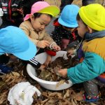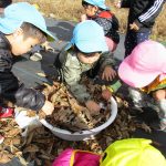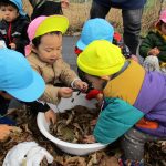 以前戸外遊びで集めた枯れ葉を使います🍂