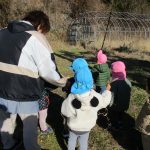2歳児さんは誘導ロープにつかまって歩き、