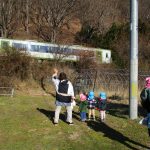 遊んでいると電車が通り、手を振って見送りました👋