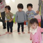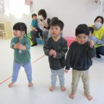 お歌を歌って手をたたいたり、足踏みしたり、