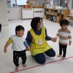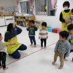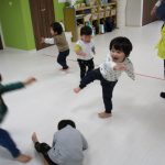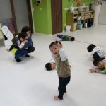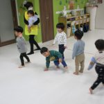 一生懸命こずえ先生の真似っこをする子ども達、