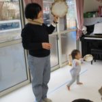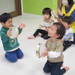 タンバリンを振ってバイバイしたり、リズムに合わせて