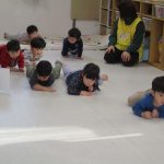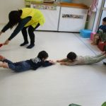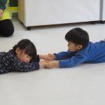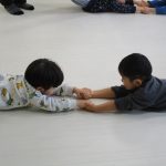 腹這いになって、お友達と手をつなぎます!!