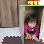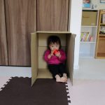 ダンボール箱のお家に入ったり、ダンボール箱の