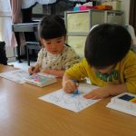 1・2歳児さんのぬりえの様子です!!