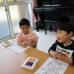 今日は1・2歳児さんは前半はぬりえをして、