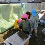 ぬりえの後はお外に行く準備をして砂場へ・・・