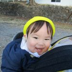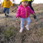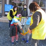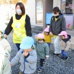 2歳児さんは誘導ロープにつかまり、1歳児さんと