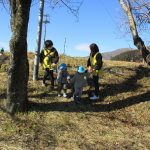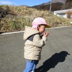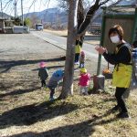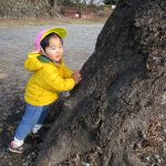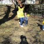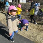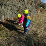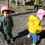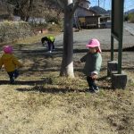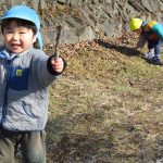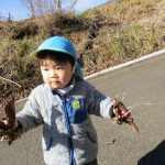 木の枝を見つけて持ち歩くお友達や、枯れ葉を集めて