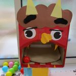 大きいお友達は鬼に目、鼻、眉毛を貼って新しいお顔を