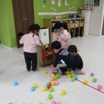 1・2歳児さん一緒にやったり、1歳児さん、2歳児さん、