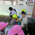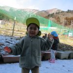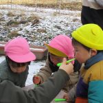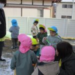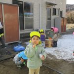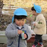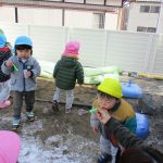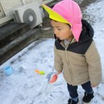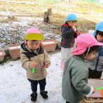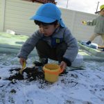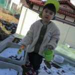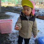 1・2歳児さんは薄っす積もった雪や砂遊びをしたり、