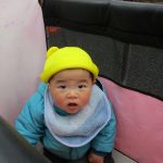 0歳児さんの大きいお友達はお散歩カーに乗り、