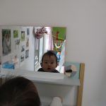 キッチンの鏡に映ったお顔をジーッと見つめていた