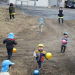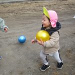 1歳児さんはタッチだけではなく、ボールを持ってくる