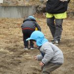 今日は1・2歳児さん保育園裏の空き地で戸外遊びを
