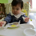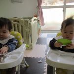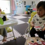 0歳児さんのお友だちは室内で前半遊びました。