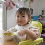 給食では小さいお友達もスプーンを持って