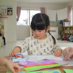 昨日の続きで、はさみで切った折り紙をのりを使って