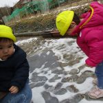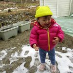 保育園の周りを散策して、脇のところにまだ雪が