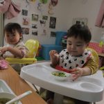 0歳児さんの戸外遊びと給食の様子です!!