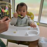 自分で食べようと頑張っています(*^_^*)