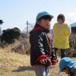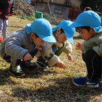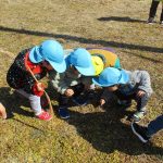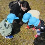1・2歳児さんは空き地に到着して、散策をはじめ