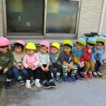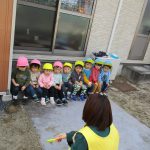 今日は戸外遊びをはじめて間もなく、地震を想定した