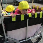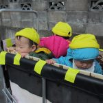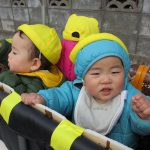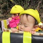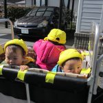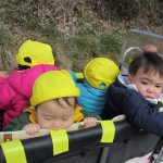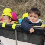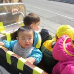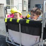 今日は初めて0歳児さん4人揃ってお散歩カーでの