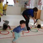 2歳児さんはでんぐり返し、1歳児さんはおサルさんに