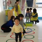 ご挨拶と、2歳児さんは今日で最後の体育教室に