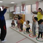 今日は1・2歳児さんは体育教室に参加、
