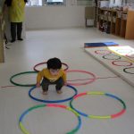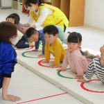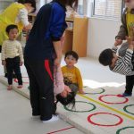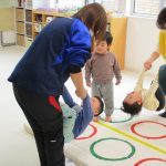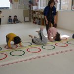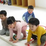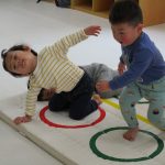 2歳児さんはでんぐり返し、1歳児さんはおサルさんに
