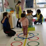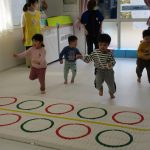 ご挨拶と、2歳児さんは今日で最後の体育教室に