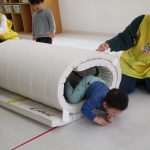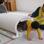 マットを丸めて、長いトンネルができました(^_^)