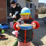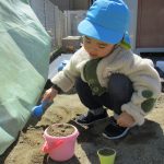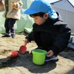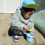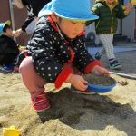 後半は1・2歳児さんは砂遊び、0歳児さんは先生に