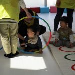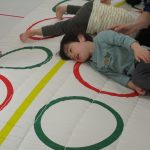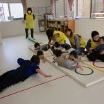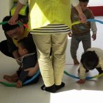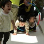 フラフープのトンネルをくぐったり、