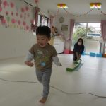 平均台を渡って縄跳びのくねくね道を歩きました!!