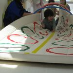 マットの下にボールを入れて、凸凹道を作り