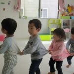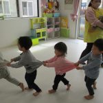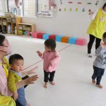 みんなでつながって、子ども達の大好きな汽車ポッポに