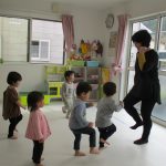 こずえ先生の弾くピアノのリズムに合わせて