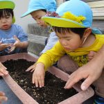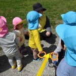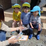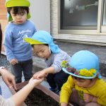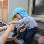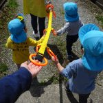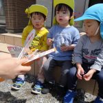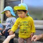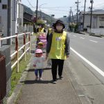 つないで歩き、月齢の小さいお友達はお散歩カーで