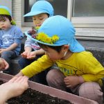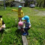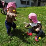 たんぽぽが咲いていて摘んだり、綿毛になっている